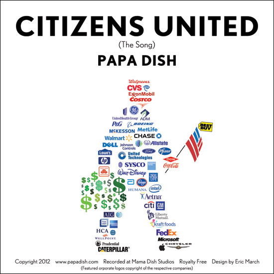 CITIZENS UNITED TO DESTROY THE INTERNET (REFRAIN) CITIZENS UNITED TO KEEP PEOPLE IN THEIR PLACE CITIZENS UNITED FOR ILL-GOTTEN GAINS (REFRAIN) WHEN IT COMES TO PAYING TAXES, CORPORATIONS BALK WHAT'S IN A NAME, WHAT'S IN A NAME |
